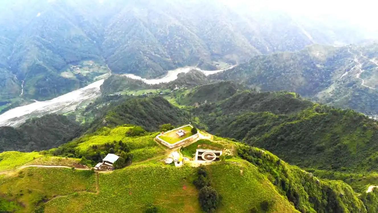 A peaceful hill station surrounded by pine forests and snow-clad Himalayan vistas.